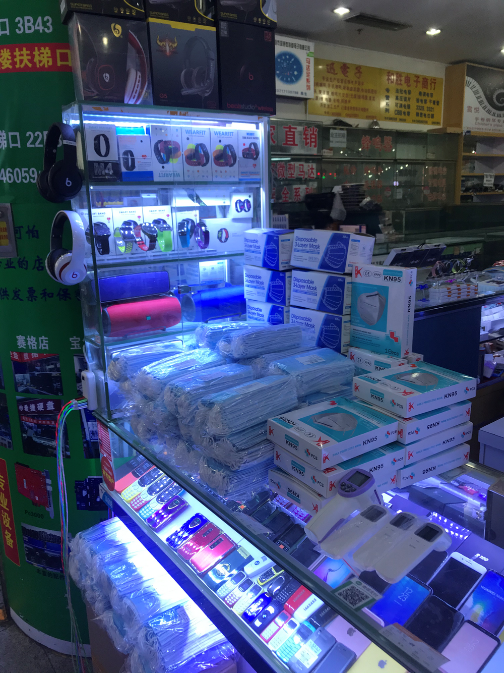 记者近日走访华强北发现,去年12月苹果高仿TWS耳机在赛格电子广场还占据一半以上档口,几乎是每家手机销售商的“标配”。如今相关摊位已经被口罩堆满,甚至连老板人都换了。