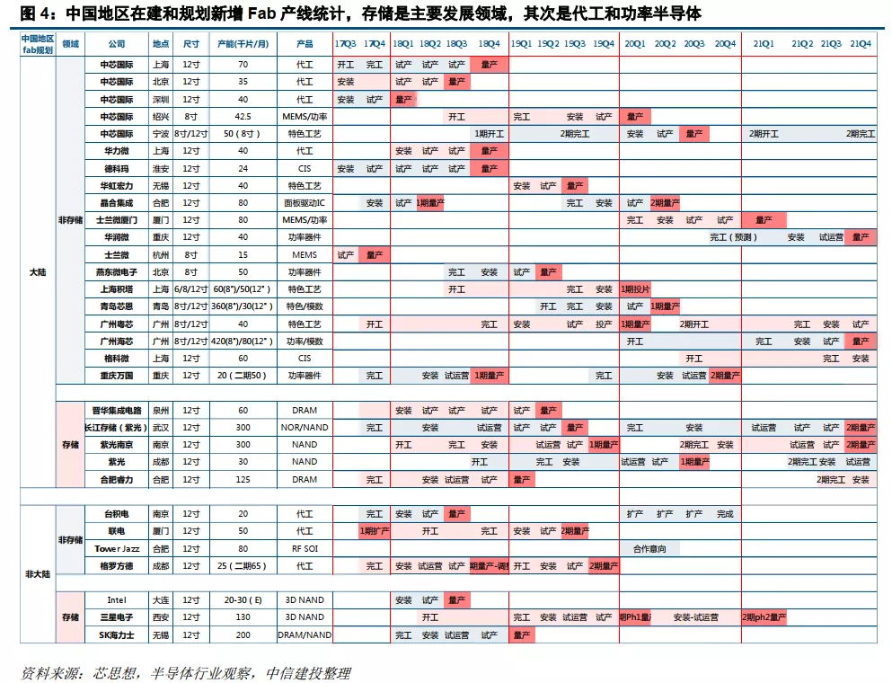 2018-2021年是大陆产线投入与产能爬坡的密集期,2020年将迎来诸多晶圆新线建设,包括新项目落地,以及已有项目的二期建设或扩产开工,本土半导体资本开支持续维持高位。