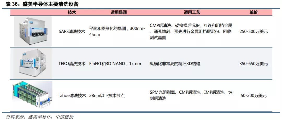 清洗环节:盛美/北方华创/至纯等多厂商布局,国产替代机会较大。国内厂商方面,盛美半导体、北方华创和至纯科技可生产槽式晶圆清洗机和单片清洗机。盛美半导体处于领先地位,生产单片清洗机,在国内有比较深厚客户基础;芯源微侧重单片清洗机,北方华创和至纯科技槽式和单片均有布局,三者均已获得国内大客户订单,营收规模尚小。