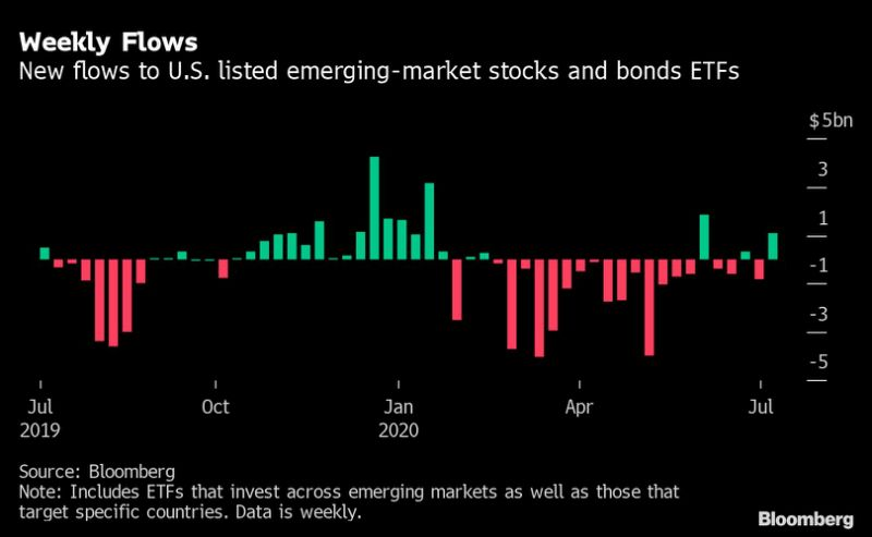 根据彭博汇总数据,这扭转了前一周新兴市场ETF资金流出8.058亿美元的局面。今年迄今,新兴市场资金累计流出172亿美元。