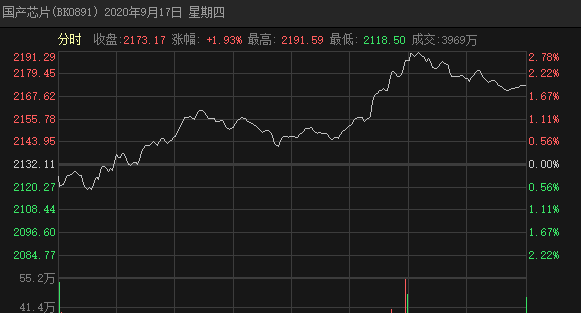 由于美联储最新声明“鸽派”不足,昨日纳指跌超1%,今日纳指期货一度大跌超2%。然而,今日国产芯片指数却在午盘持续拉升,最高涨近2.78%,最终收涨近2%,近5个交易日已累涨6.23%。