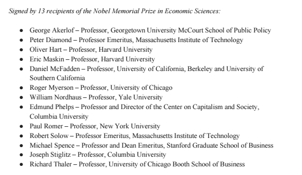 这13位诺奖得主包括信号理论之父乔治·阿克洛夫(George Akerlof)、“机制设计理论”专家埃克里·马斯金(Eric Maskin)和罗杰·梅尔森(Roger Myerson)、现代宏观经济学缔造者之一埃德蒙·费尔普斯(Edmund Phelps)等知名经济学家。