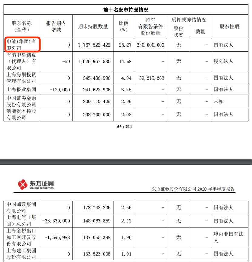 申能集团是东方证券的大股东。根据半年报,截至2020年6月底,作为东方证券的发起人之一,申能集 团持有公司已发行股本约 25.27%,为第一大股东。此外,上海海烟、上海报业、浙能资本、上海电气、中国邮政以及上海建工等均是前十大股东。