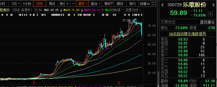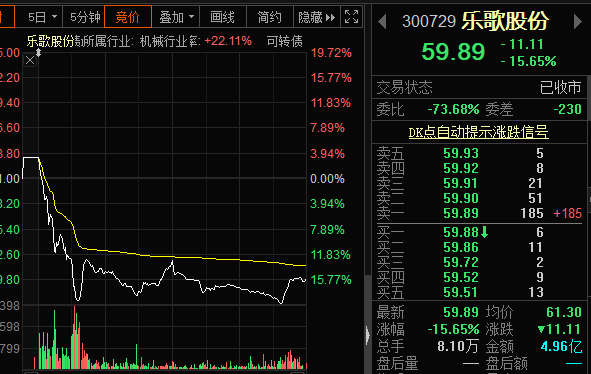 盘面上,乐歌股份今日早盘股价一度跌超19%,随后便宽幅震荡。截至收盘,该股跌15.65%。