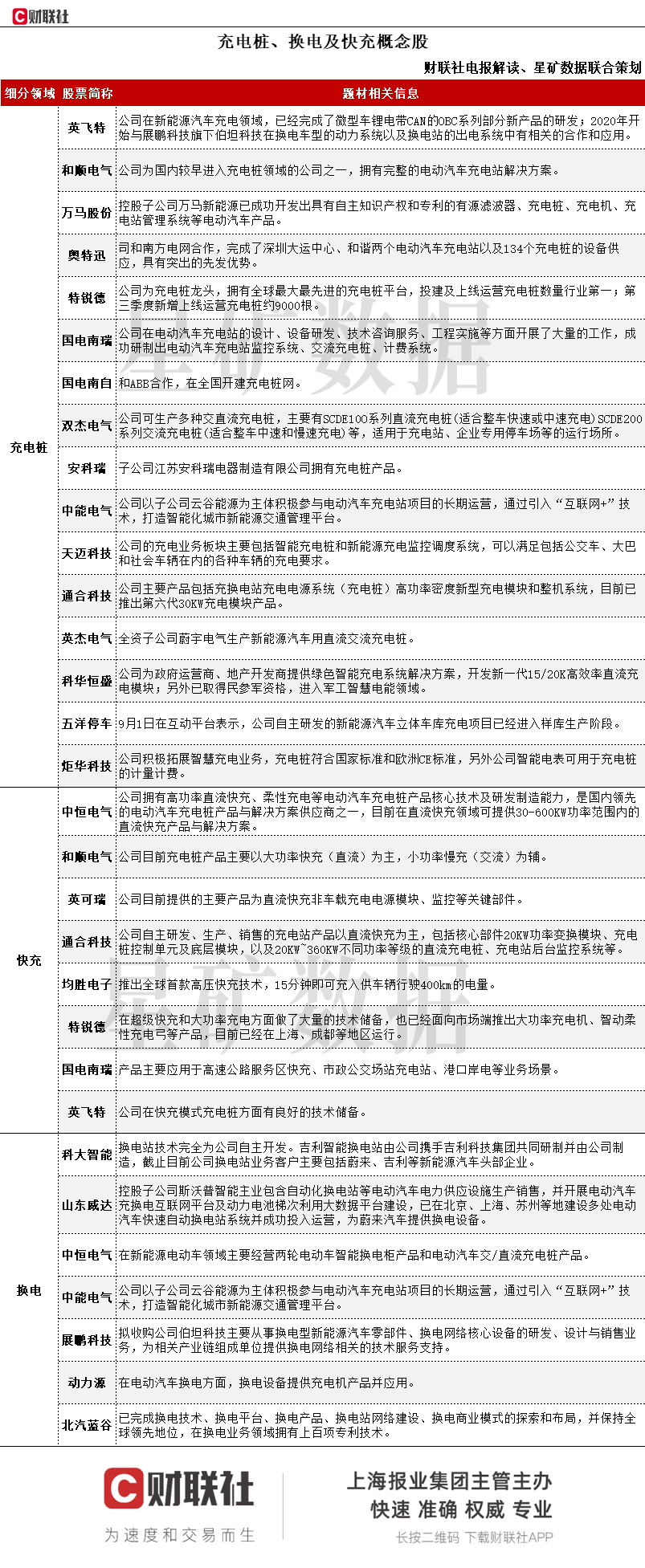 财联社电报解读栏目此前联合星矿数据整理充电桩等细分领域概念股,详见下表。