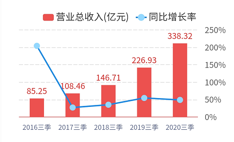 机构扎堆看好的背后,是隆基股份的亮眼业绩。2020年度前3季度,该公司累计实现营业收入338.32亿元,同比增长49.08%;实现扣非净利润60.14亿元,同比增长76.35%。