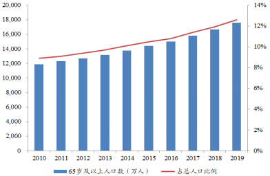 图1:我国65岁及以上人口数量(万人)与占总人口比例