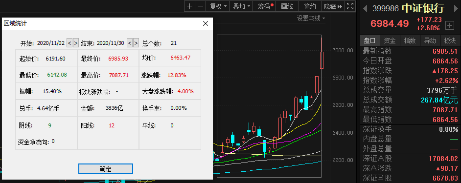 财联社11月30日讯,进入11月,中证银行指数涨幅已超10%。资金面上,北上资金也开始“偏爱”银行股,上一个交易日,有“宇宙行”之称的工商银行获北上外资净买入2.02亿,市值逼近2万亿元。当日,银行板块市值单日狂涨超2000亿元,暴拉2.35%。