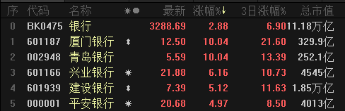今日,沪指高开后再度高走,截至午间收盘已涨逾1%,次新股厦门银行快速拉升封板,青岛银行随后涨停,其余银行股全线跟涨。银行ETF开盘拉升,而后稍有回落。领停的厦门银行此前同时迎来地方政策利好与三季报显示的盈利逐年攀升。