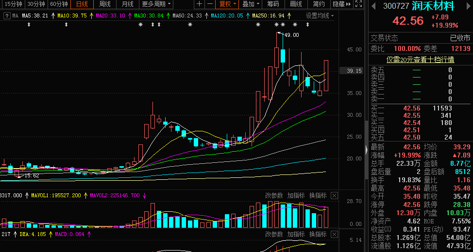 个股方面,郑州煤电继续涨停,彩虹股份晋级4连板,周五4连板的龙洲股份则倒T跌停,润禾材料午后上板成为创业板唯一涨停股,国盛金控、厦门银行、小康股份尾盘均炸板回落,今天炸板率超过50%。
