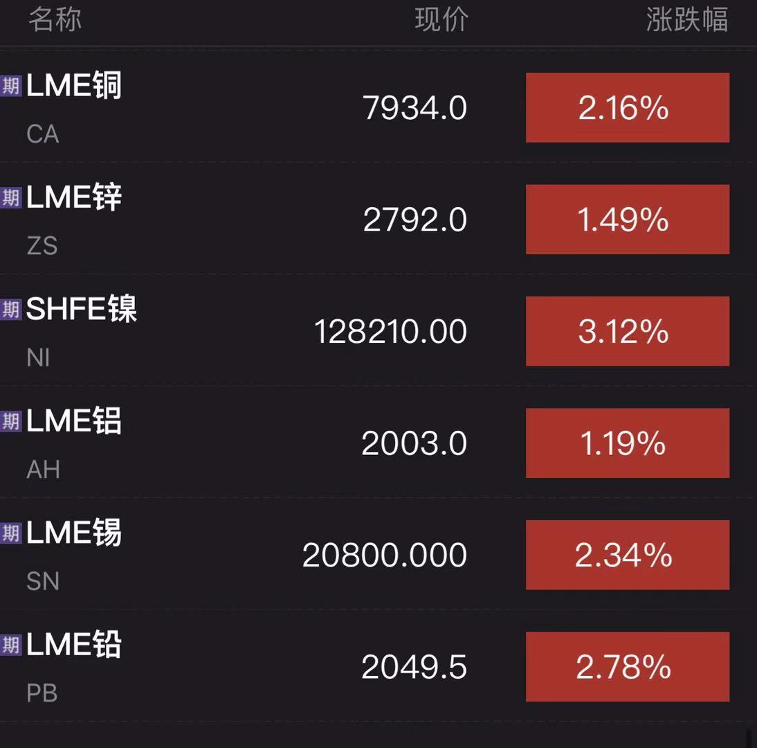 同样受到美元持续走弱带动,商品市场继续走高。截至发稿,COMEX黄金大涨2.12%重回1930美元;COMEX白银日内张近4%;铜、锌、镍、锡铅等商品也出现集体上涨的态势;原油方面受到本周OPEC+会议顶格增产50万桶/天预期带动上涨近1%。