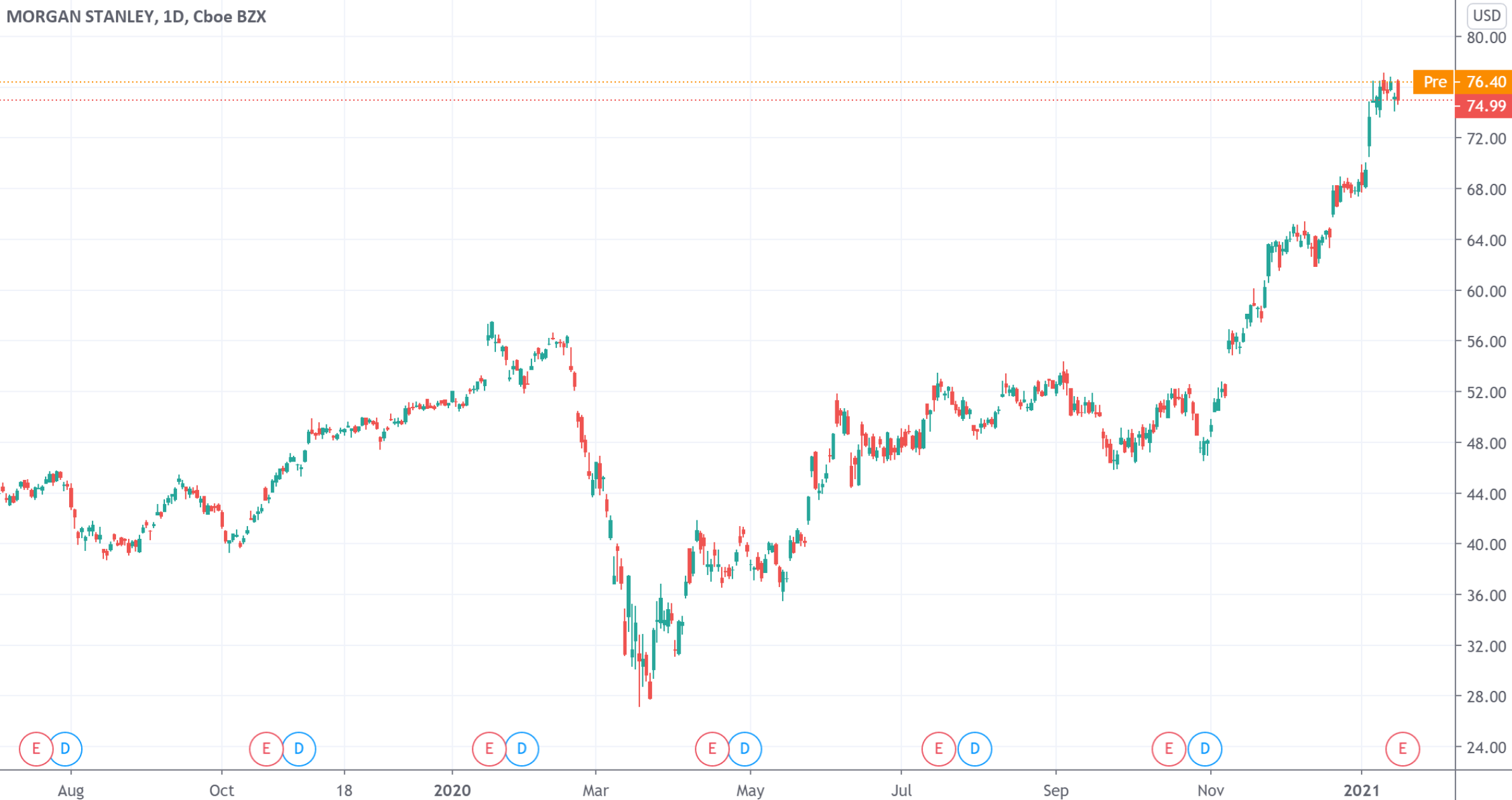 受到财报利好带动,截至发稿摩根士丹利盘前涨1.83%,公司在2020年累计上涨38%,新年头三周再度上涨10%。