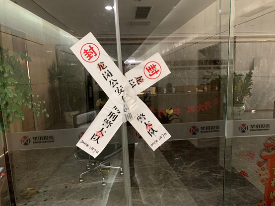 记者3月1日走访了大连华讯深圳分公司所在地,所有办公区的大门均被公安部门贴上封条,室内植物叶片零落,办公区域较为混乱。