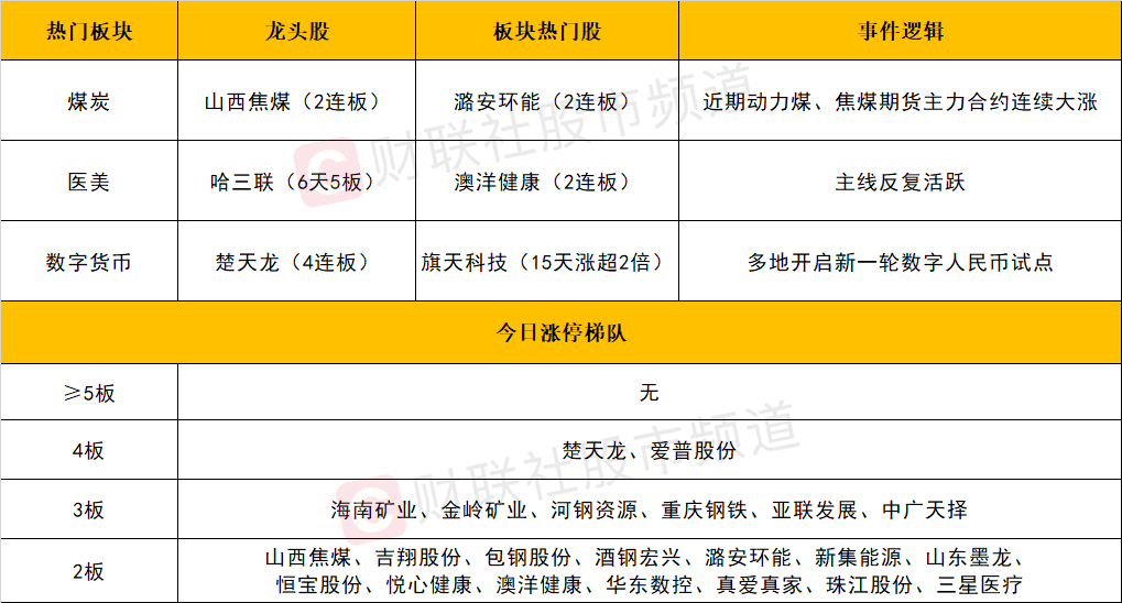 题材全面开花,有色金属、煤炭、锂矿、数字货币、汽车、医美、二胎、可转债等板块轮番表现。