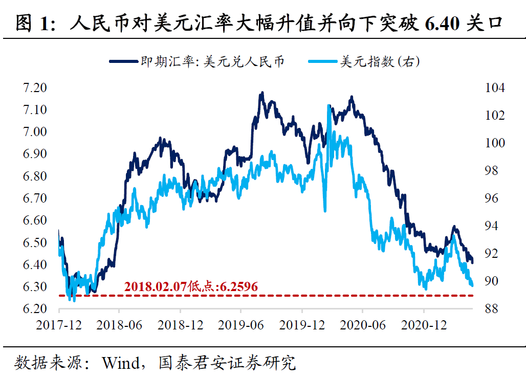 复盘美元指数和人民币汇率走势:年初市场主流观点一致看空美元、看好人民币对美元升值,主要逻辑在于美国国会分裂制约财政空间、美联储被迫继续“大水漫灌”、疫情和疫苗的不确定性下美国经济温和复苏。