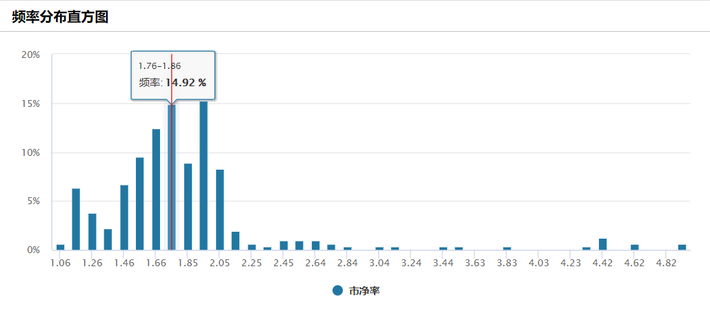 而频率分布直方图的数据显示,PB区间1.76-1.86的历史出现频率为14.92%,仅次于1.95-2.05这一区间。