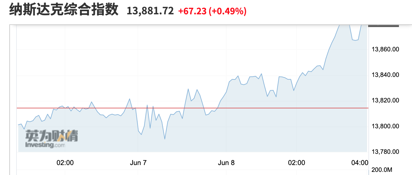 (纳指收涨0.49%,来源:英为财情)