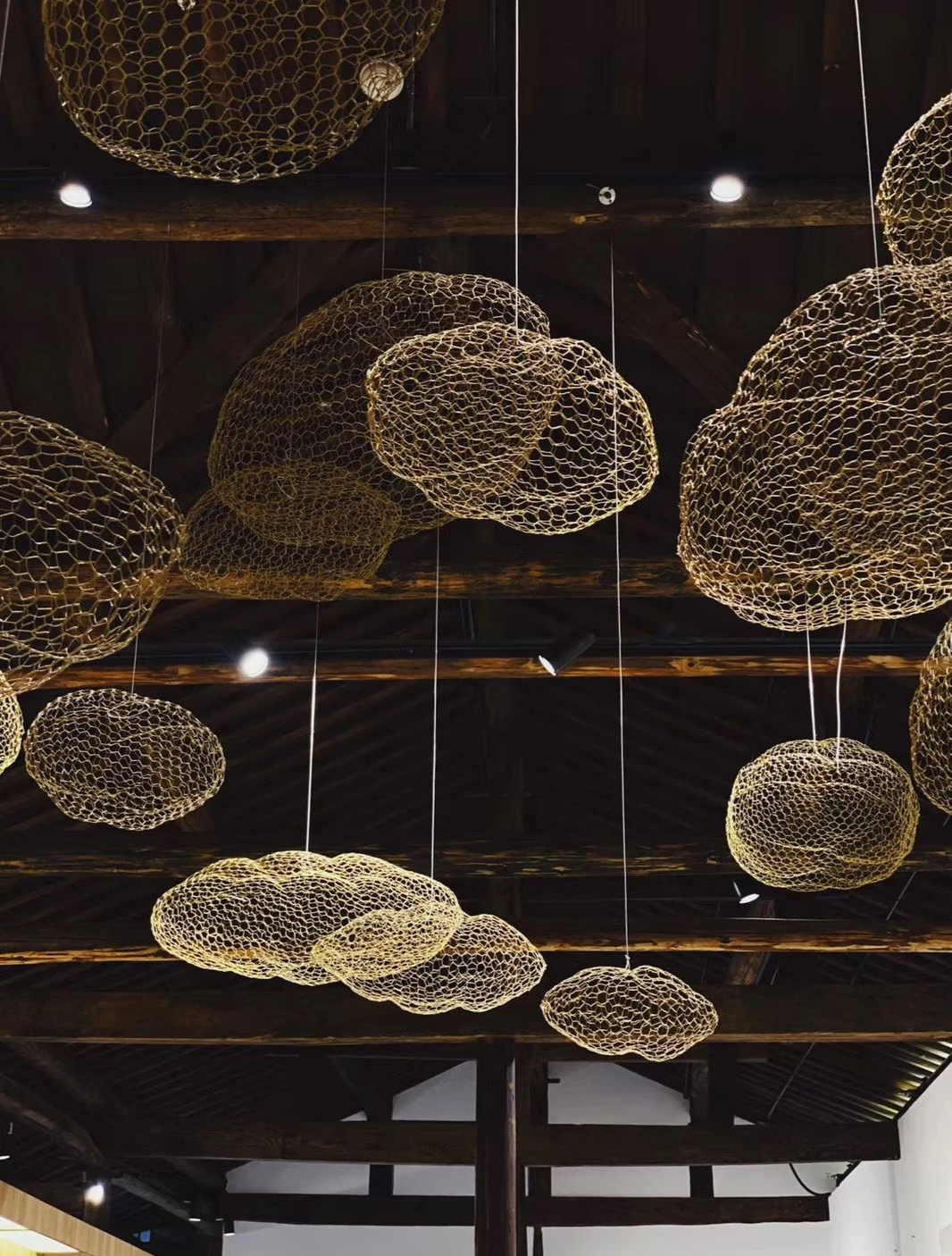 二楼原有木屋盖不做吊顶,只以灯光打亮轮廊,隔断及墙体选用传统石灰泥粉刷及宣纸材质,最大化的还原历史。这里不定期还会举办展览。近期的展览是“繁花——金宇澄个人版画展”,感兴趣的可以前往观看。