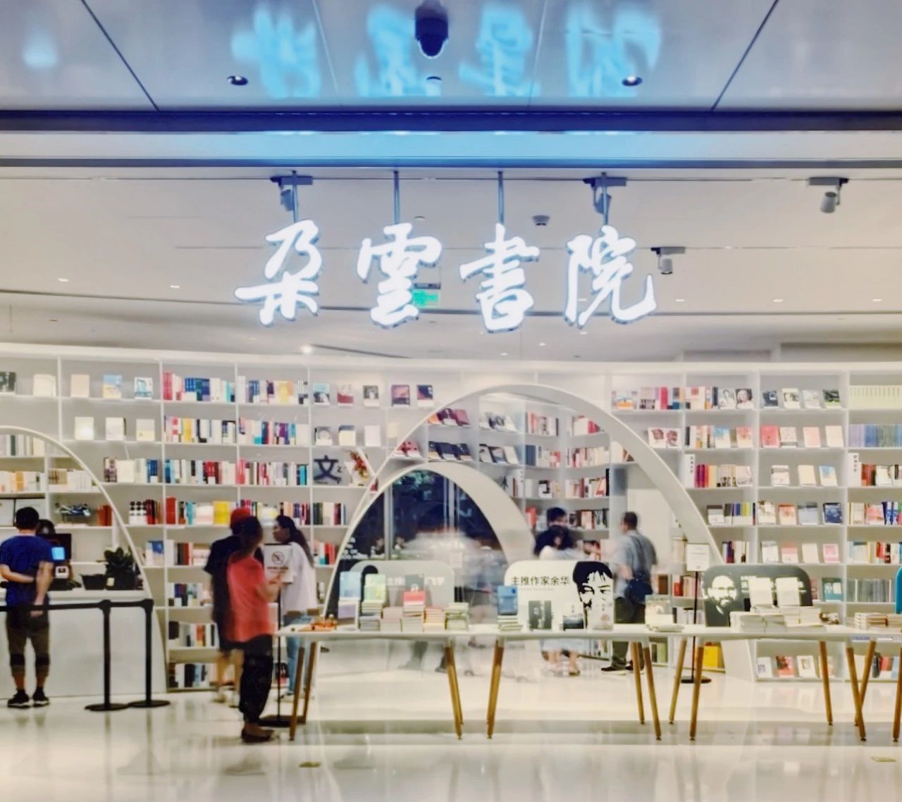 一出电梯,“朵云书院”四字映入眼帘,一个个的白色拱门让人忍不住在书海间穿梭。书院整体设计由著名建筑设计师俞挺主持完成。为了保持书店的纯粹与神秘,同时与中国第一高楼作呼应,设计师以“山水·秘境”为理念,打造而成。