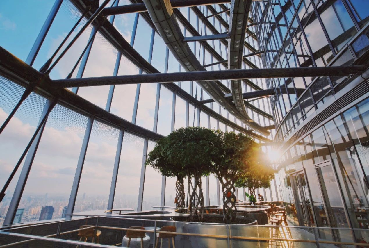 来到空中花园,更能发现“山水”的奥妙。“好望南角”面对日夜流动的黄浦江,将外滩与上海老城区的景色尽收眼底。夜色降临,“秘境”空间的“好望北角”则是一个不错的去处,连绵55米的吧台充满了时尚感,点上一杯鸡尾酒,看魔都华灯初上,璀璨夜景。需要提醒的是,两个空间都是消费区,需要点单才能进入。
