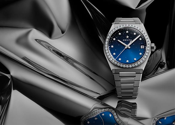 品牌聚焦女性,以独特美学重新定义当代女性,展现女士腕表的多样型格。DEFY Midnight女士腕表,汲取无垠宇宙为灵感,以别致的星空图案装点表盘,精心镶嵌的钻石也于腕间熠熠生辉。配备快速更换系统及多款表带,佩戴者可轻松更换,以适合不同的造型和场合。