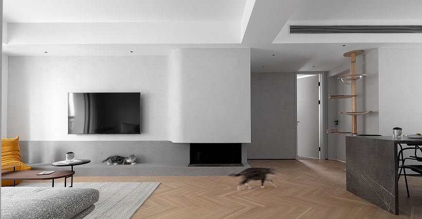 年轻人都有自己的居住主张,尤其是自己的婚房,装修当然得按俩人喜好来,不将就,不凑合,完全量身定制。吧台、衣帽间不能少,现代壁炉也得要,猫架子是“蛋哥”的玩耍空间,统统安排。