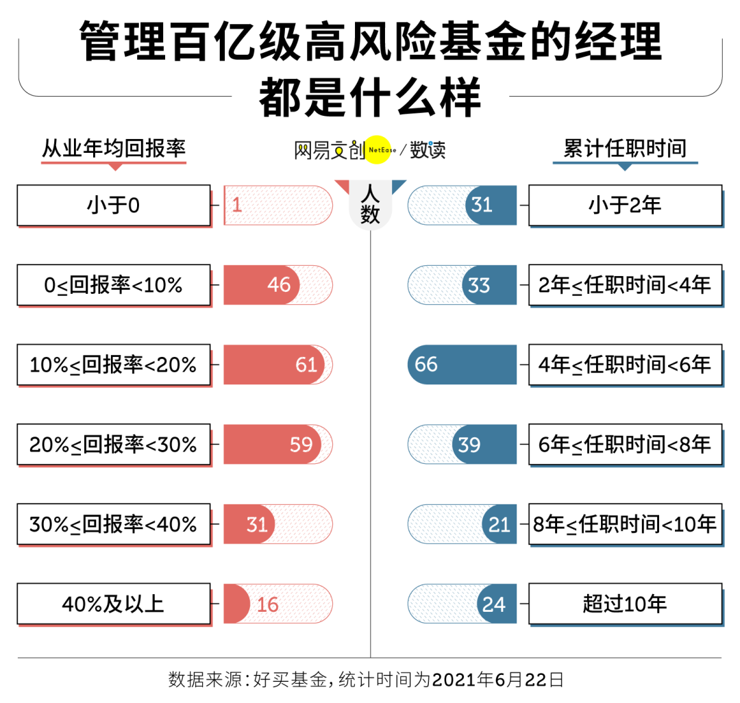 而如果要继续进阶为管理百亿级资产的基金经理,还将承受更加严苛的考验。目前,中国有 665 位基金经理管理着规模超过 100 亿元的基金,其中,有 214 位在管理风险较高的股票型基金或混合基金。