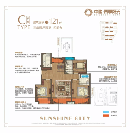 值得一提的是,项目建面约121㎡宽境洋房3面宽4阳台的设计独树一帜,主次卧均配备独立观景阳台,家庭成员不用踏出房间,即可观赏到窗外的园林景观,实现270度观景,这是别墅级别的享受。主卧套房设计,家人之间不相互打扰。步入式衣帽间,奢阔大气。