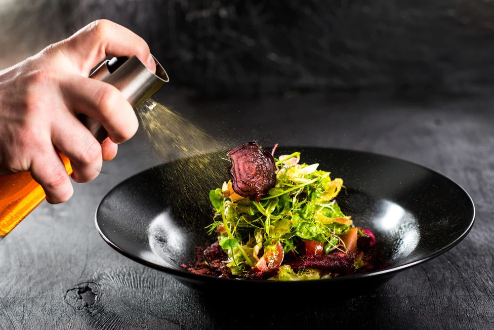 通常在烹饪完毕后,威士忌香精才会姗姗登场,赋予菜肴以风味。喷油瓶和滴管都是常用的工具,喷油瓶能让风味平均分布在菜肴中,比较容易加入恰到好处的分量;而用滴管让香味流散在菜肴中可以制造酱料般的感官享受。