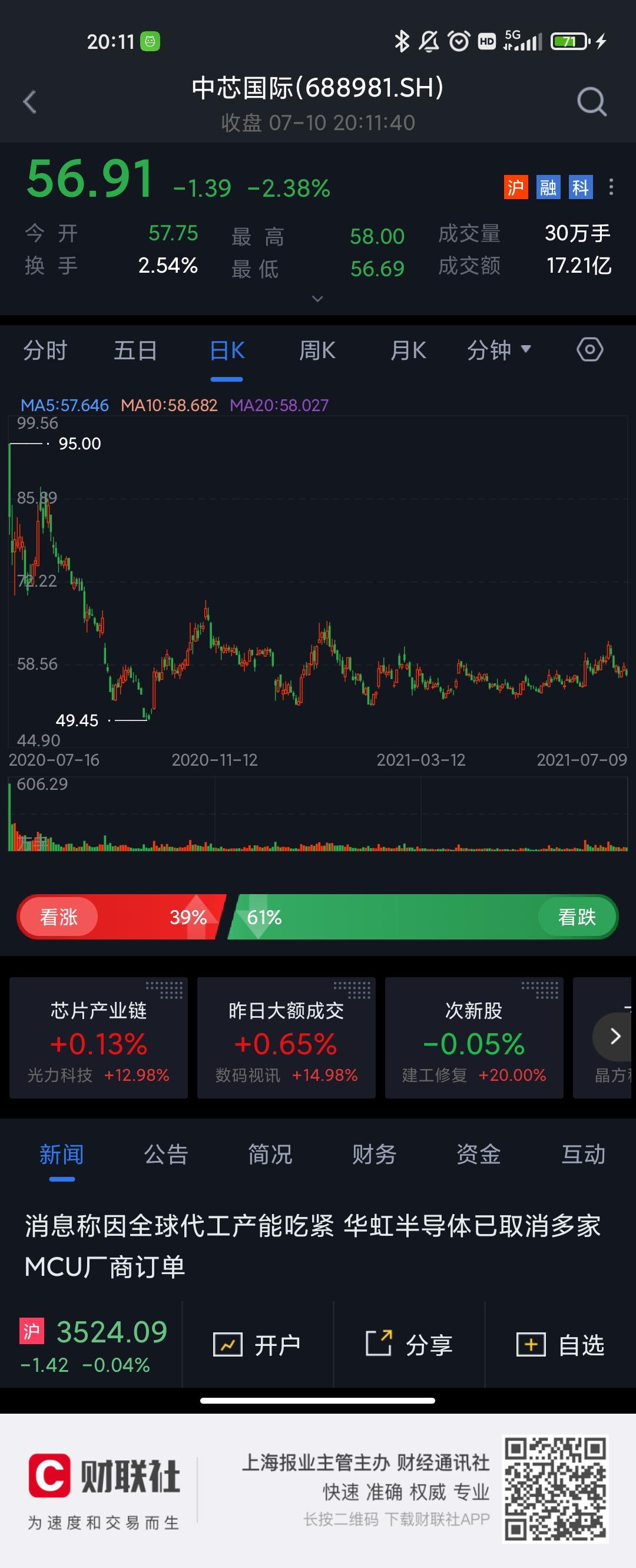 值得注意的是中芯国际此次限售股上市流通数量约为7.75亿股,占A股总股本的40%,上市流通日期为2021年7月16日,解禁类型为公司首次公开发行战略配售限售股,限售股股东数量为27名。