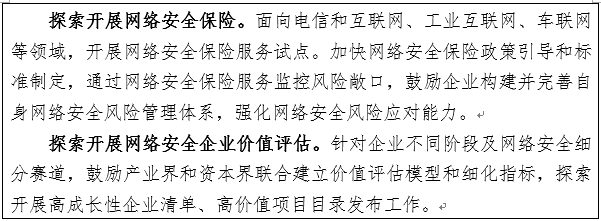 13.强化产融合作机制建设。鼓励产融合作试点城市加大投入,深化网络安全产融合作。健全产融动态监测体系,定期开展网络安全领域风险投资、股权投资、企业并购、上市公司运营等动态监测,促进产融精准对接。推动建立符合网络安全产业特征、针对企业不同发展阶段的评价体系,支持开展高成长企业、高价值项目评估,协同做好信息共享和信用评价成果转换。