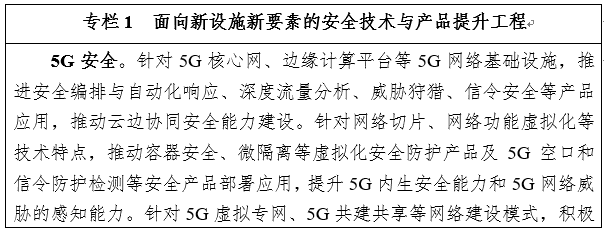 5.发展创新安全技术。推动网络安全架构向内生、自适应发展,加快开展基于开发安全运营、主动免疫、零信任等框架的网络安全体系研发。加快发展动态边界防护技术,鼓励企业深化微隔离、软件定义边界、安全访问服务边缘框架等技术产品应用。积极发展智能检测响应技术,提升用户实体行为分析、安全编排与自动化响应、扩展检测与响应等技术应用水平。推动发展主动安全防御技术,推进欺骗防御、威胁狩猎、拟态防御等技术产品落地。加速应用基于区块链的防护技术,推进多方认证、可信数据共享等技术产品发展。加强卫星互联网、量子通信等领域安全技术攻关。