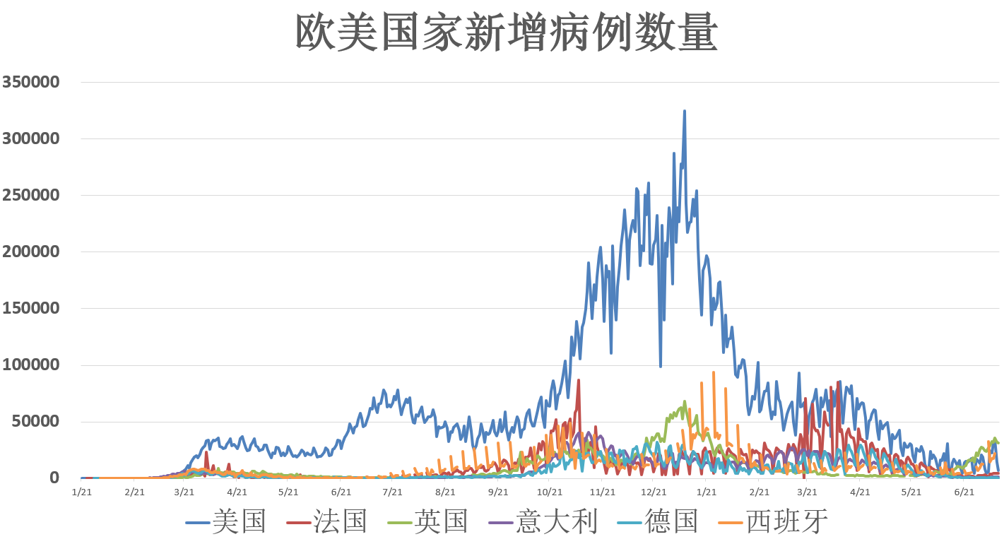 除了英国(5139169例)、西班牙(3937192例)仍受德尔塔病毒较显著影响日增病例过万外,欧洲多国大都处于相对稳定的状态。截至发稿,法国(5875337例)、意大利(4271276例)、德国(3743972例)确诊病例增量继续在近期水平震荡。