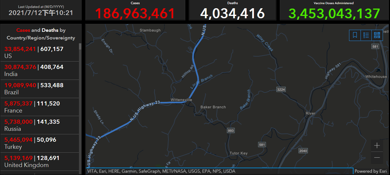 财联社(上海,编辑 史正丞)讯,截至北京时间7月12日23点20分,全球新冠肺炎确诊病例上升至186,963,461例,其中死亡病例达到4034416例。
