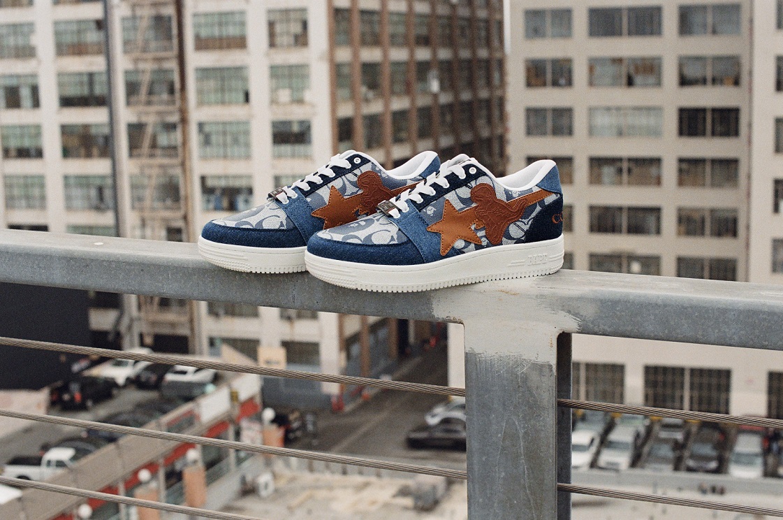 该系列涵盖成衣、皮具、鞋履和配饰,完美融合BAPE街头潮牌文化与Coach精湛传统工艺,彰显双方品牌发源地城市共有的真实与乐观主义态度。特色包袋、连帽卫衣和T恤印有Coach标志性图案和BAPE经典标识相结合的限量系列印花,兼具高端时尚内核与街头潮流风尚。