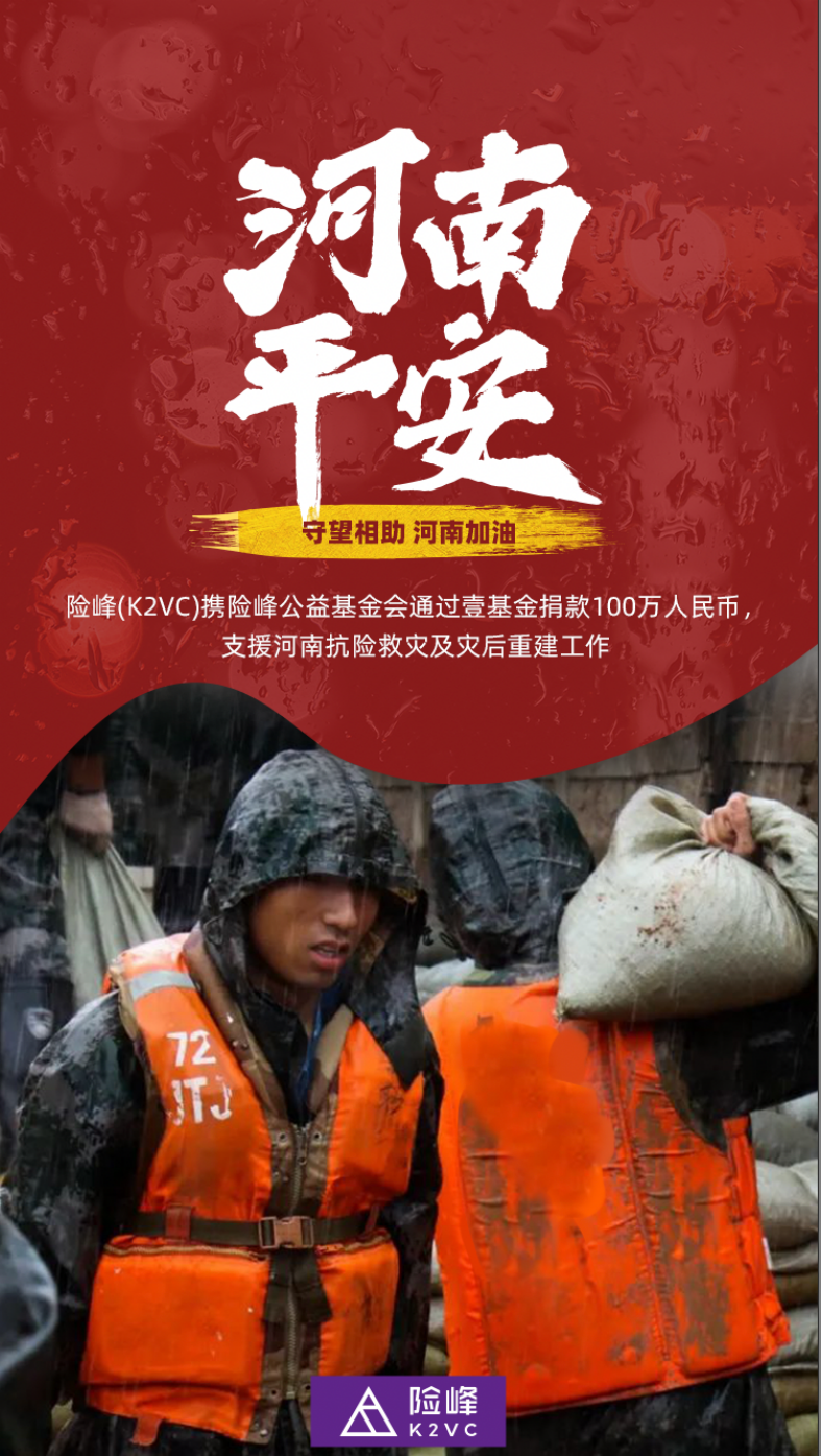 专注新经济领域的早期投资,险峰也携手险峰公益基金会通过壹基金捐款100万元人民币,支援河南抗险救灾及灾后重建工作。