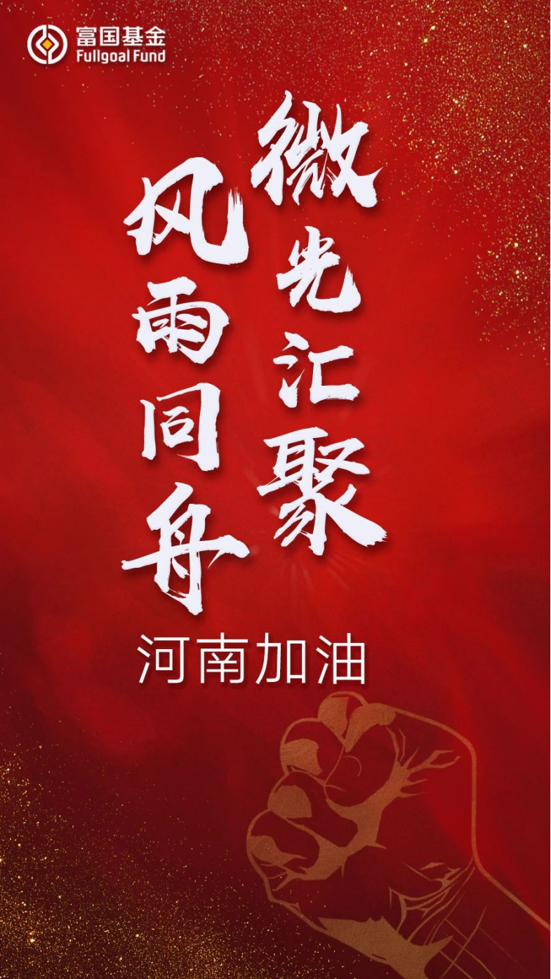 富国基金表示,成立22年以来,始终铭记社会责任,将责任意识融入公司的使命和文化中,时刻不忘弘扬互助精神、民族大义。相信在党中央的坚强领导下、在社会各界力量的全力支援下,河南必能渡过难关。
