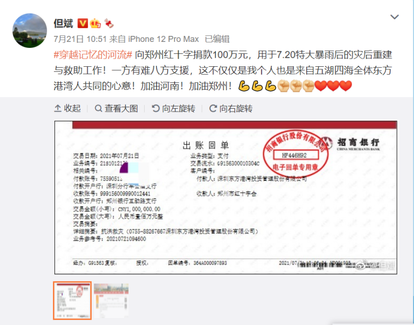 除了公募基金以外,私募行业的捐款步伐也未停下。毕业于河南大学,深圳东方港湾投资管理董事长但斌在7月21日上午在公开平台表示,代表东方港湾全体员工,已向郑州红十字捐款100万元,用于7.20特大暴雨后的灾后重建与救助工作。