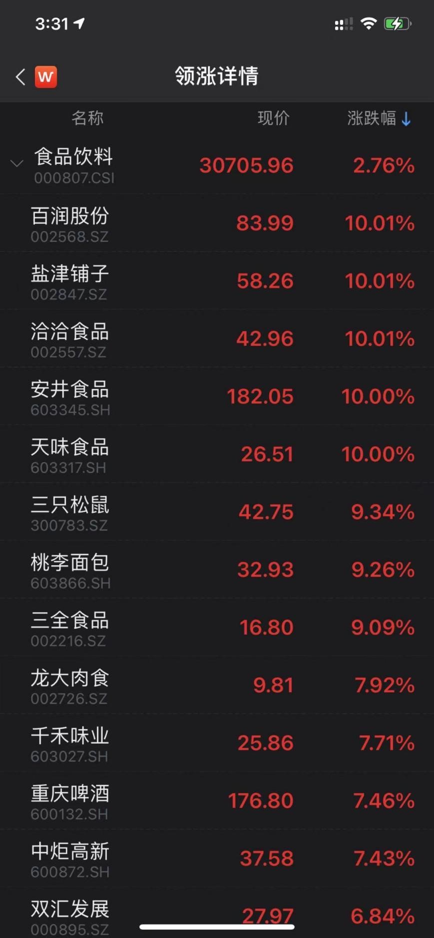 截至今天收盘,食品饮料板块强势逆袭,中证食品饮料指数(000807.CSI)的50只成分股全线飘红,百润股份、盐津铺子、洽洽食品等多只相关个股涨停。