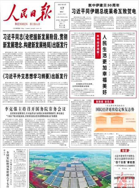【8月17日《人民日报》要闻精选七条】财联社8月17日讯,今天《人民日报》的主要内容有: