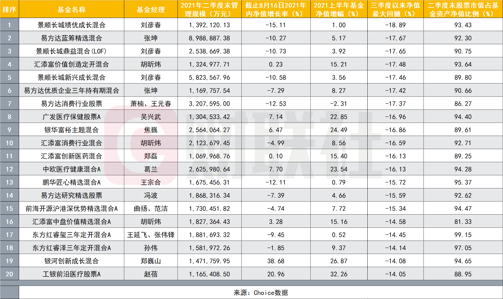 三季度以来回撤幅度最大的“百亿”主动权益类基金