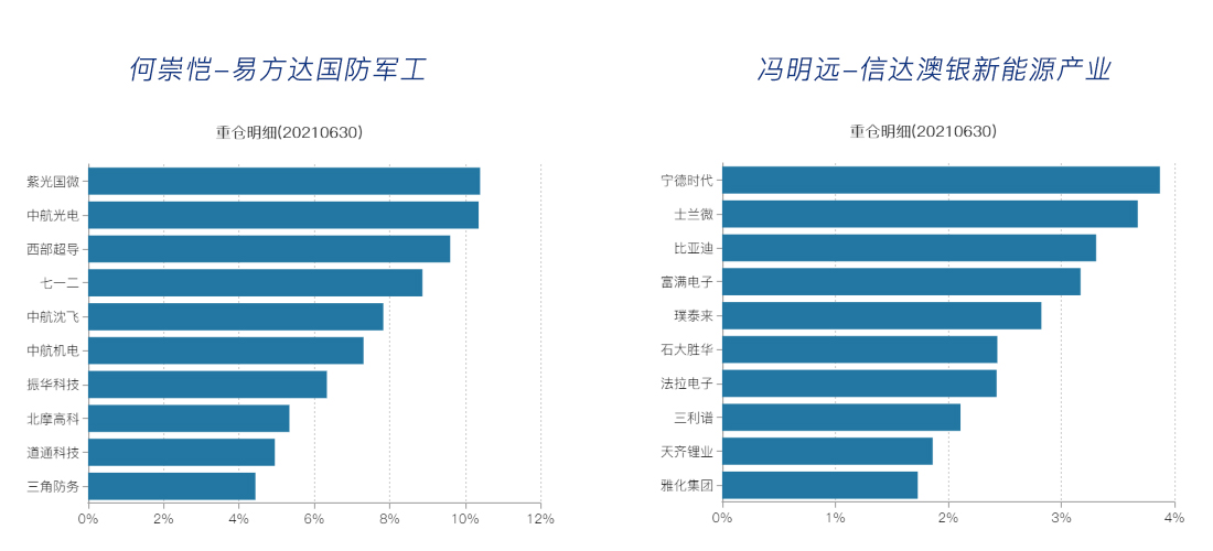 易方达国防军工与信达澳银新能源产业二季度末十大重仓股