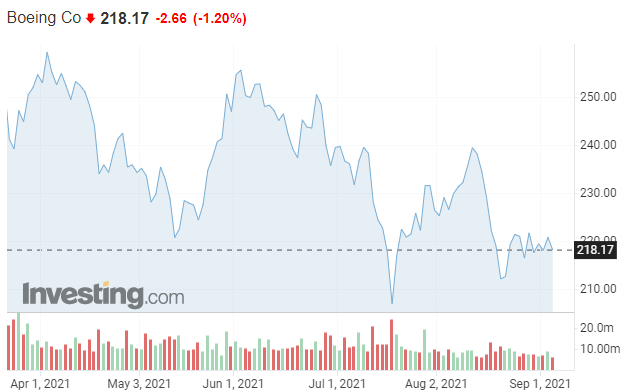 上周五收盘,波音公司股价收报218.17美元,下跌1.2%。