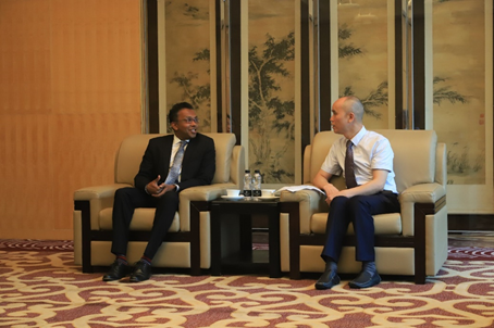 戴文德副代表(左一)与黄奕林副总裁(右一)会谈