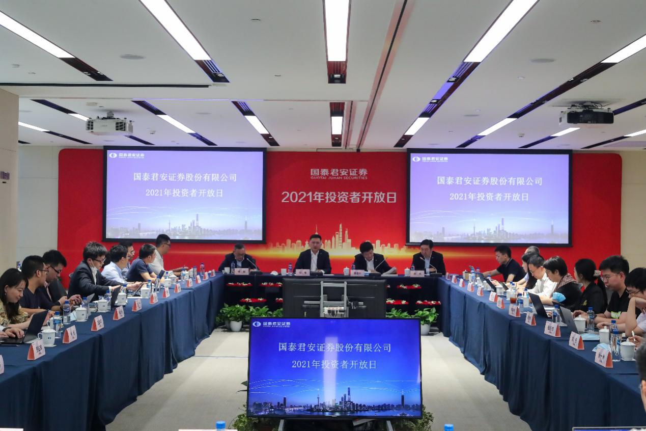 9月23日下午,国泰君安2021年投资者开放日活动在上海举行。本次活动以财富管理与数字化转型为主题,国泰君安党委书记、董事长贺青,副总裁龚德雄,董事会秘书喻健,首席信息官俞枫等出席活动,来自中信证券、海通证券、华泰证券、中金公司、广发基金、华夏基金、南方基金、平安资管、太平资管、重阳投资、宁泉资产、朱雀资产、星石投资等机构的60多位投研总监、基金经理和分析师参加活动。