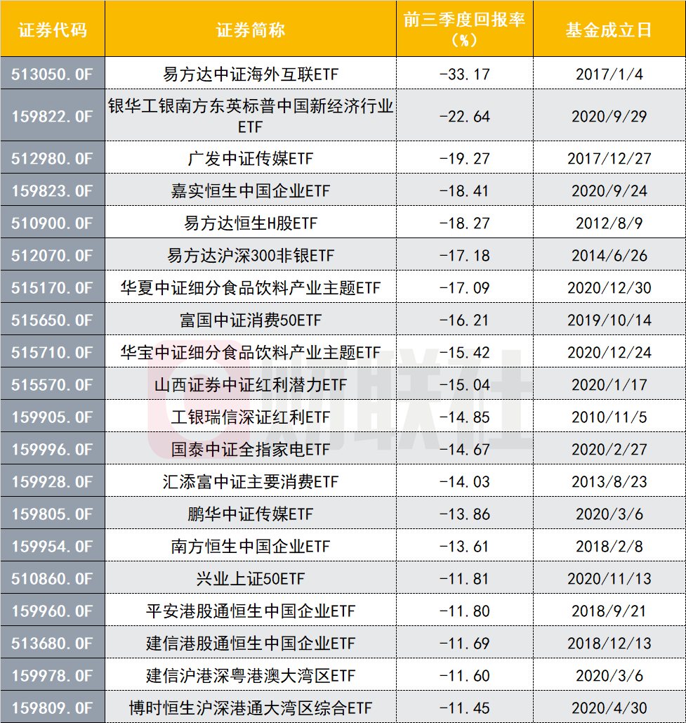而亏损榜单中,此前一直名列倒数的军工主题ETF终于“消失”在榜单之中,取而代之的却是港股相关ETF。
