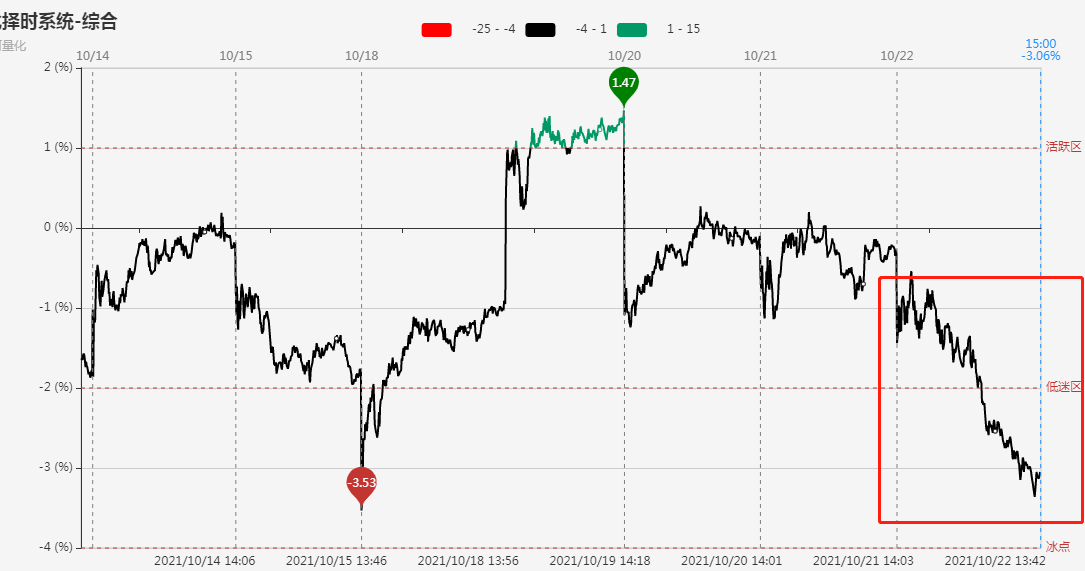 指标显示,市场短线情绪今日处于单边回落状态,收盘在冰点上方。连续两天近3000股收跌,可以留意下一个情绪冰点的博弈机会。