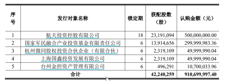 航天彩虹披露定增结果:军民融合产业基金获配近3亿元
