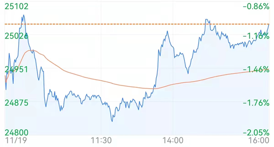 截止收盘,恒生指数跌1.07%,报收25049.97点 ;恒生科技指数跌0.26%,报收6457.97。国企指数跌0.72%,报收8970.67;红筹指数涨1.07%,报收3852.65。