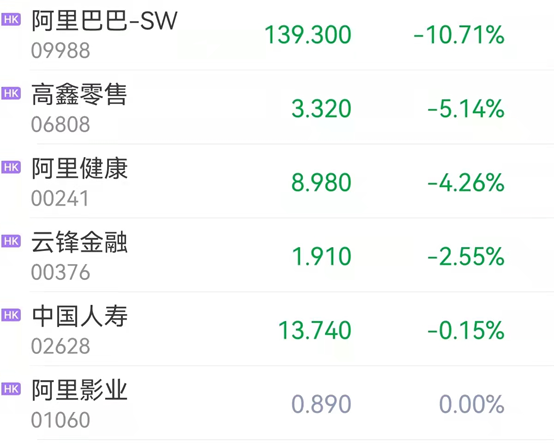 港股午后情绪有所回暖,但是阿里巴巴概念板块仍是萎靡不振,其中阿里巴巴—SW(09988)和高鑫零售(06808)领跌,跌幅分别为10.71%和5.41%。